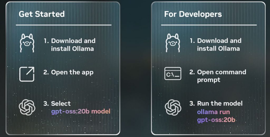 使用者可以透過Ollama應用程式或Microsoft AI Foundry Local(指令列)等方式使用gpt-oss-20b模型。