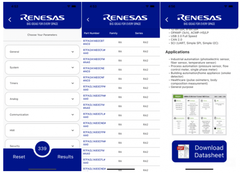 Using the new smart MCU Guide, you will be able to search for the right choice among the RA, RX, RL78 and Synergy product families by just using your finger on your smartphone display.