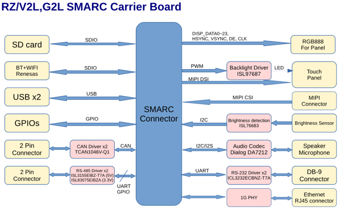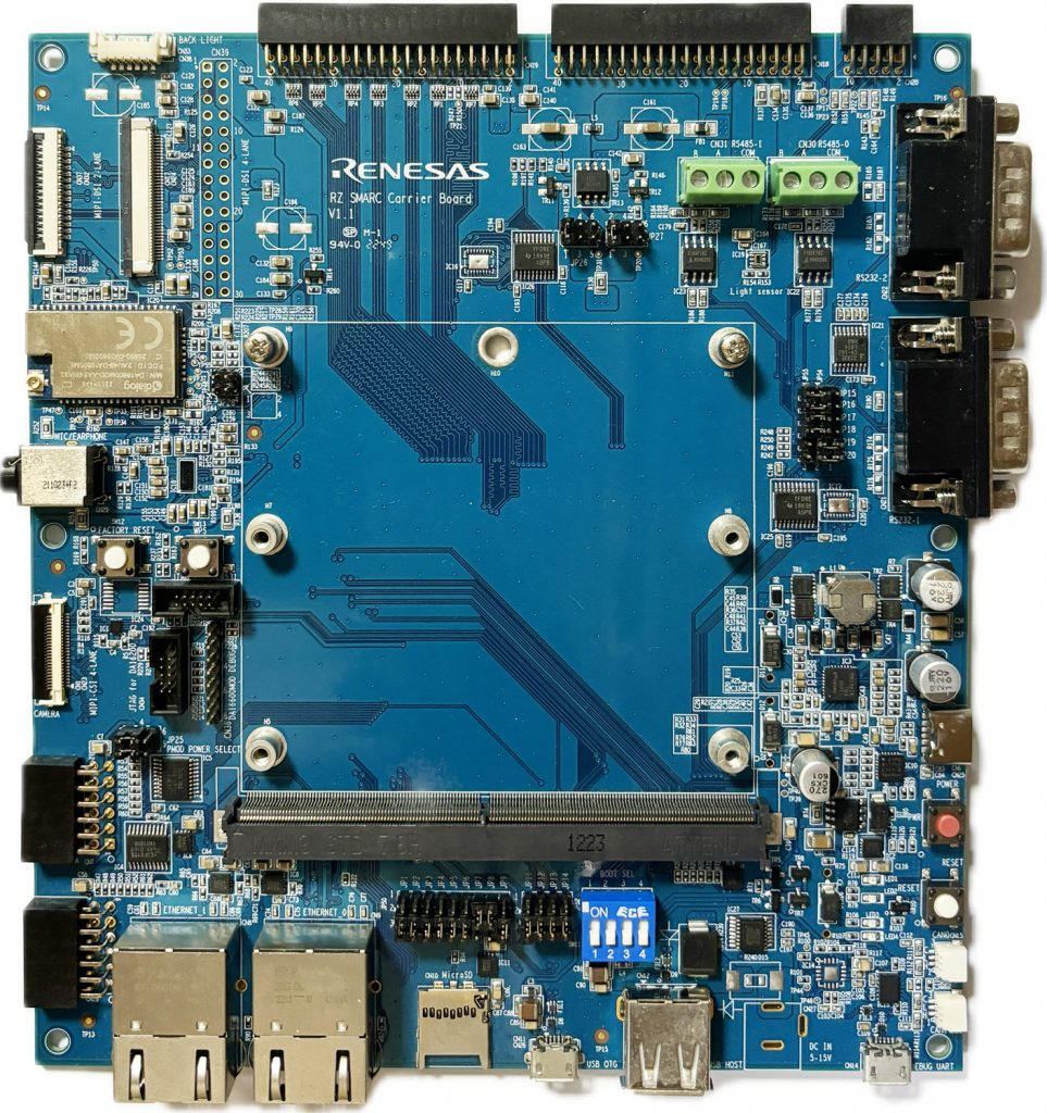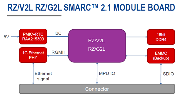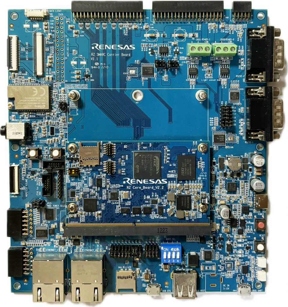 Regulus RZ/V2L and RZ/G2L SMARC SOM Evaluation Kit is designed by the specification of SMARC v2.1 standard to provide a compacted System On Module (SOM) solution based on Renesas high-performance RZ/V2L, G2L processor, and the carrier board provide rich peripheral, it’s easy to start your AI project by Renesas DRP-AI.